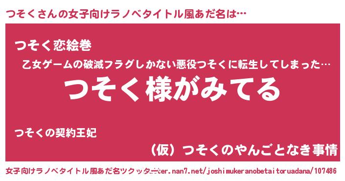 | ヒーロー風カッコイイあだ名 | 『炎刃騎士ツソ』『慈愛の使者つそく』 |