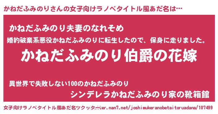 | 男性向けラノベタイトル風あだ名 | 『やはりかねだふみのりの青春ラブコメはまちがっている 』 |