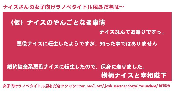 | 男性向けラノベタイトル風あだ名 | 『この素晴らしい世界にナイスを!』 |