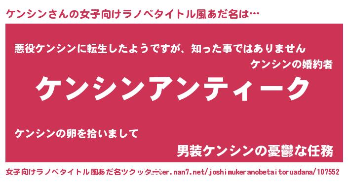 | 意味不明あだ名 | 『自称ケンシン』『ケンシンフォーエバー』 |