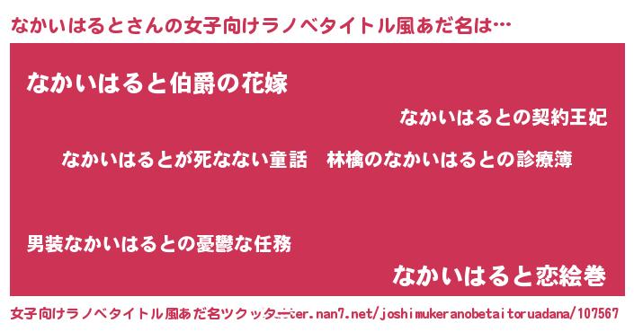 | 男性向けラノベタイトル風あだ名 | 『魔弾の王となかいはると』 |