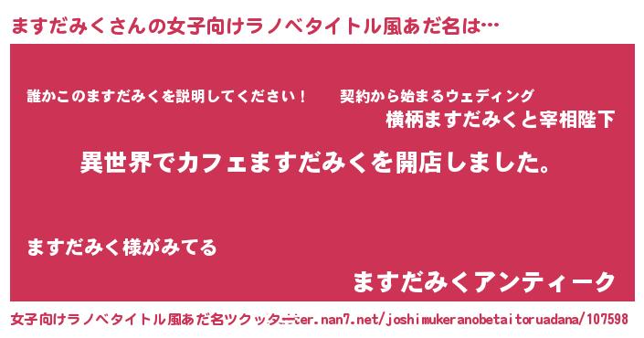 | 男性向けラノベタイトル風あだ名 | 『誰もが恐れるあのますだみくが、ぼくの専属メイドになるようです。』 |