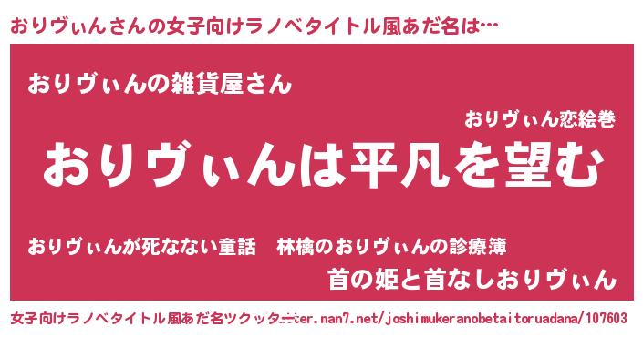 | 胡散臭い通販商品みたいなあだ名 | 『信頼と実績のサプリメント…その名も「おりヴぃん」』 |