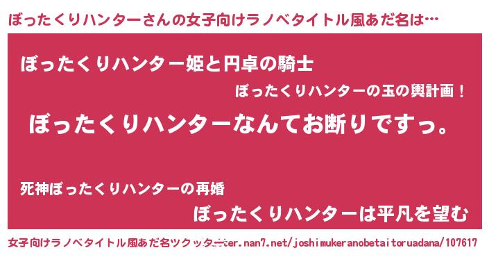 | 意味不明あだ名 | 『自称ぼったくりハンター』 |