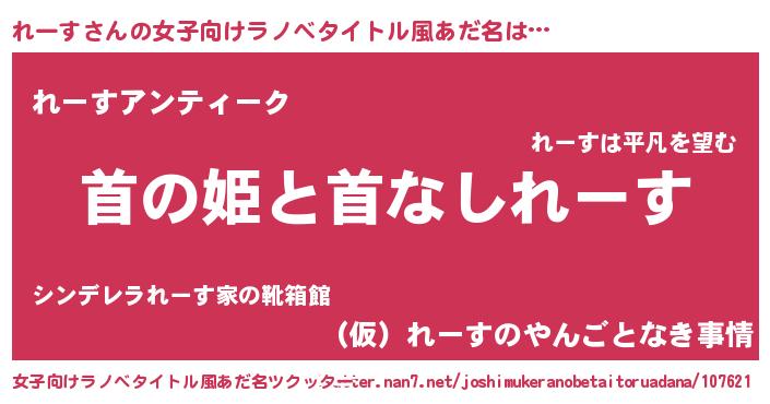 | 男性向けラノベタイトル風あだ名 | 『はたらくれーすさま!』『れーすの憂鬱』 |