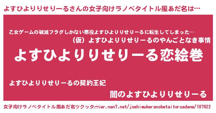 | 男性向けラノベタイトル風あだ名 | 『ノーゲーム・ノーヨスヒヨリリセリール』 |