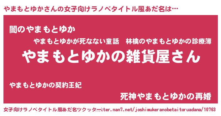 | 男性向けラノベタイトル風あだ名 | 『やはりやまもとゆかの青春ラブコメはまちがっている 』 |