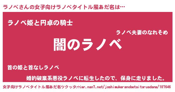 | 男性向けラノベタイトル風あだ名 | 『Re:ラノベから始める異世界生活』 |