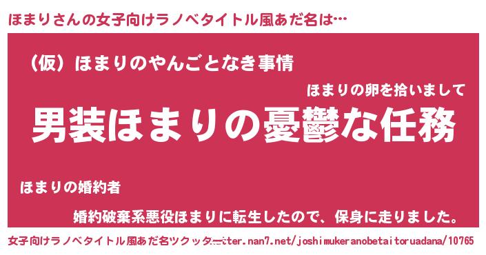 | 胡散臭い通販商品みたいなあだ名 | 『億万長者になれるブレスレット…その名も「ほまり」』 |