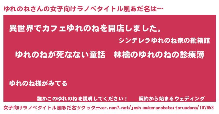 | 意味不明あだ名 | 『住所不定無職ゆれのね(84歳)』 |