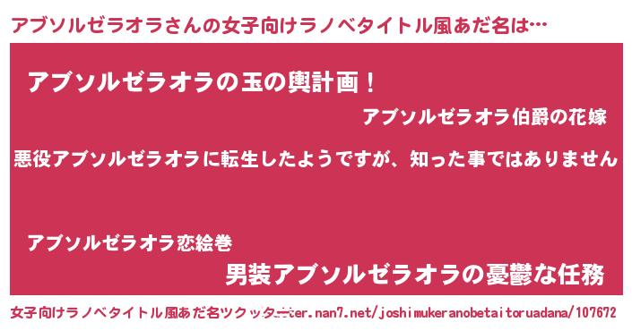 | 胡散臭い通販商品みたいなあだ名 | 『あなたにだけ特別に提供する100年もののヴィンテージワイン…その名も「アブソルゼラオラ」』 |