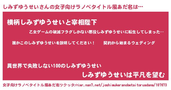 | 男性向けラノベタイトル風あだ名 | 『シミズユウセイアートオンライン』 |