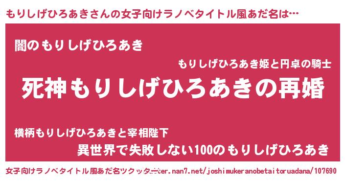 | 男性向けラノベタイトル風あだ名 | 『ノーゲーム・ノーモリシゲヒロアキ』 |