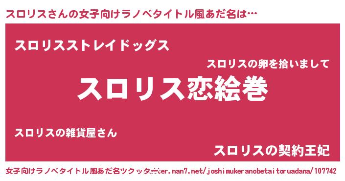 | ヒーロー風カッコイイあだ名 | 『愛の使者スロリス』『最強戦士スロリス』 |