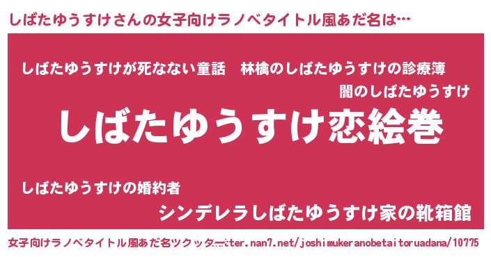 | 男性向けラノベタイトル風あだ名 | 『ノーゲーム・ノーシバタユウスケ』 |