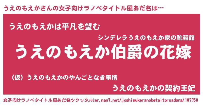 | 男性向けラノベタイトル風あだ名 | 『やはりうえのもえかの青春ラブコメはまちがっている 』 |
