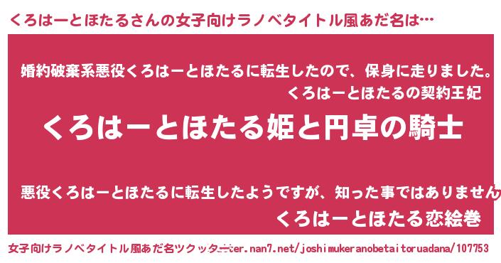 | ヒーロー風カッコイイあだ名 | 『スーパークロハートホタル』 |
