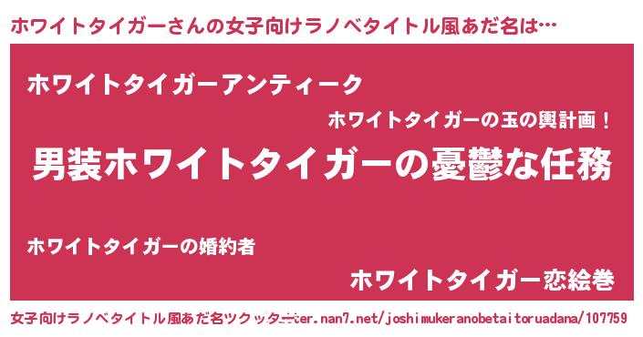 | 意味不明あだ名 | 『自称ホワイトタイガー』 |