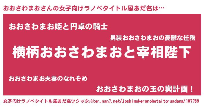 | 男性向けラノベタイトル風あだ名 | 『おおさわまおに滅ぼされるだけの簡単なお仕事です』 |