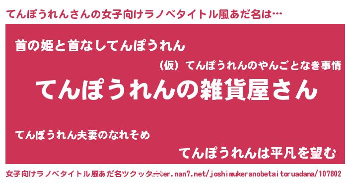 | 男性向けラノベタイトル風あだ名 | 『やはりてんぽうれんの青春ラブコメはまちがっている 』 |