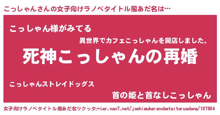 | 男性向けラノベタイトル風あだ名 | 『ノーゲーム・ノーコッシャン』 |
