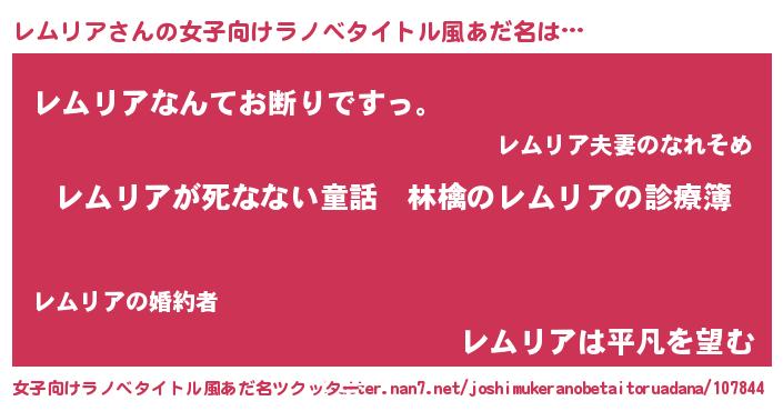 | 意味不明あだ名 | 『住所不定無職レムリア(74歳)』 |