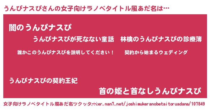 | 男性向けラノベタイトル風あだ名 | 『ウンピナスピアートオンライン』 |