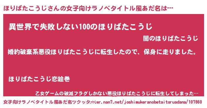 | 胡散臭い通販商品みたいなあだ名 | 『絶対に幸福をもたらす水素水…その名も「ほりばたこうじ」』 |