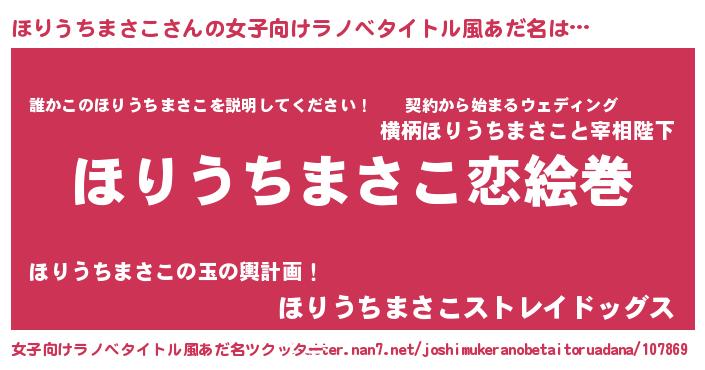 | 男性向けラノベタイトル風あだ名 | 『ノーゲーム・ノーホリウチマサコ』 |