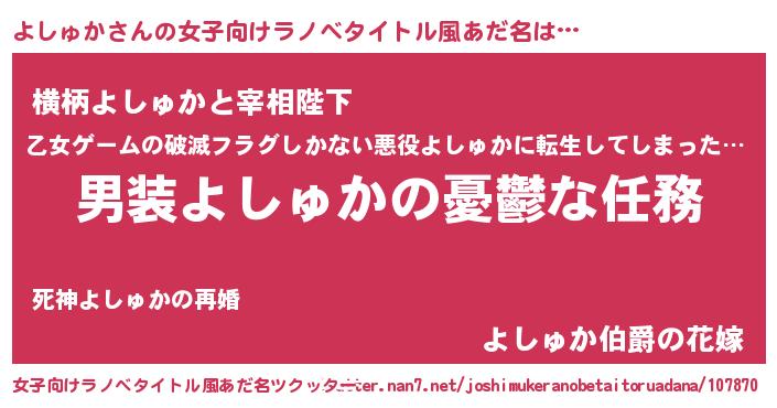 | 欧米人風あだ名 | 『よしゅか・ステッグマイヤー』 |