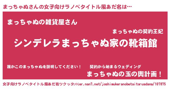 | 胡散臭い通販商品みたいなあだ名 | 『幸せが訪れる高級そうな絵画…その名も「まっちゃぬ」』 |