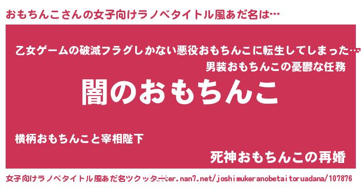 | 意味不明あだ名 | 『自称おもちんこ』『永久保存おもちんこ』 |