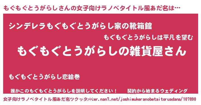 | ヘコむあだ名 | 『つくし』『もぐふぇ~』『もぐっ子』 |