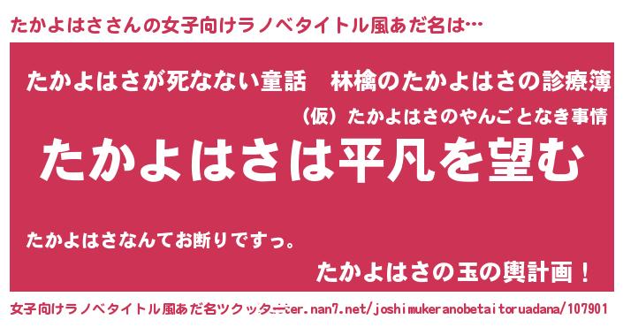 | 恥ずかしいあだ名 | 『タカリンリン』『プリティーたかよはさ』 |