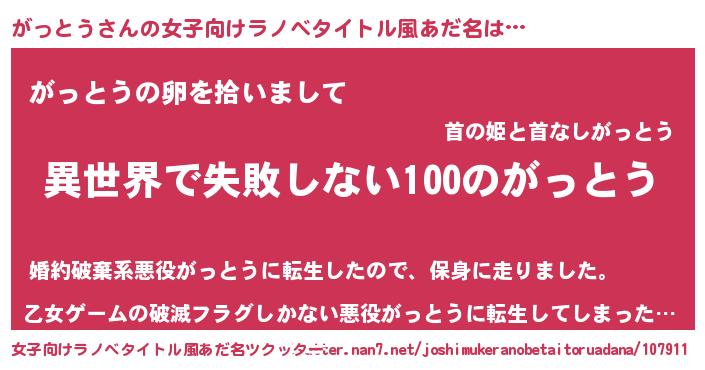 | 男性向けラノベタイトル風あだ名 | 『がっとうという概念が存在しない退屈な世界 』 |