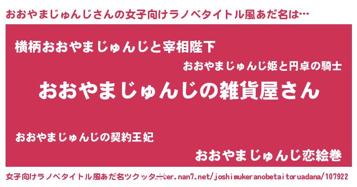 | 男性向けラノベタイトル風あだ名 | 『やはりおおやまじゅんじの青春ラブコメはまちがっている 』 |