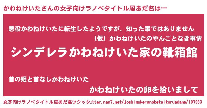 | 意味不明あだ名 | 『住所不定無職かわねけいた(47歳)』 |