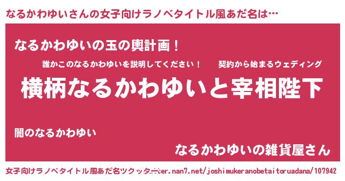 | 男性向けラノベタイトル風あだ名 | 『なるかわゆいに滅ぼされるだけの簡単なお仕事です』 |