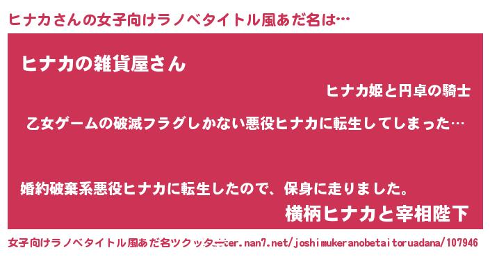 | 胡散臭い通販商品みたいなあだ名 | 『世界中を虜にした世界で10本だけ現存している希少なブランデー…その名も「ヒナカ」』 |