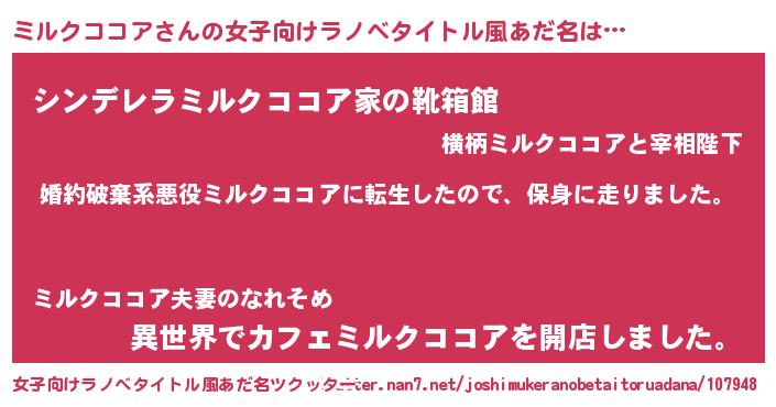 | ヒーロー風カッコイイあだ名 | 『ネオミルクココア』『暗黒騎士ミル』 |