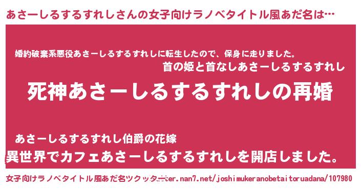 あさーしるするすれしさんの女子向けラノベタイトル風あだ名