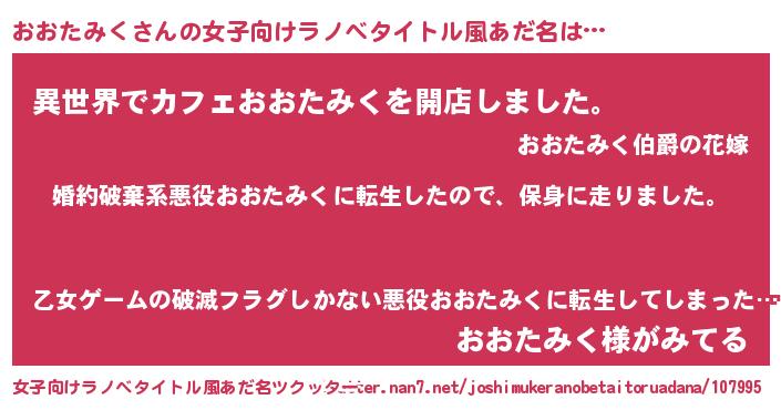 | 男性向けラノベタイトル風あだ名 | 『オオタミクスレイヤー』 |