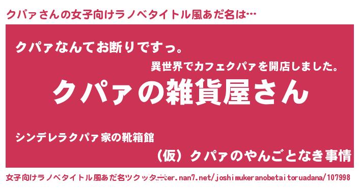 | 男性向けラノベタイトル風あだ名 | 『やはりクパァの青春ラブコメはまちがっている 』 |