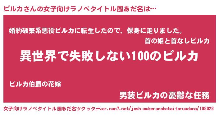 | 男性向けラノベタイトル風あだ名 | 『ビルカという概念が存在しない退屈な世界 』 |