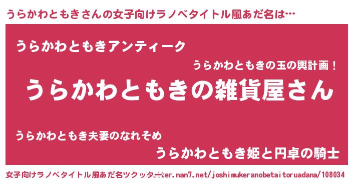 | 男性向けラノベタイトル風あだ名 | 『やはりうらかわともきの青春ラブコメはまちがっている 』 |