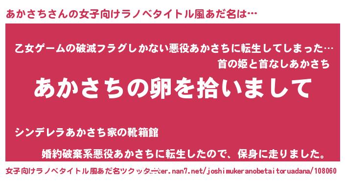 | 意味不明あだ名 | 『とにかく怪しいあかさち』 |