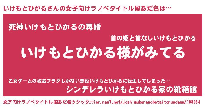 | 男性向けラノベタイトル風あだ名 | 『いけもとひかるの嫁は女の子じゃないと思った?』 |