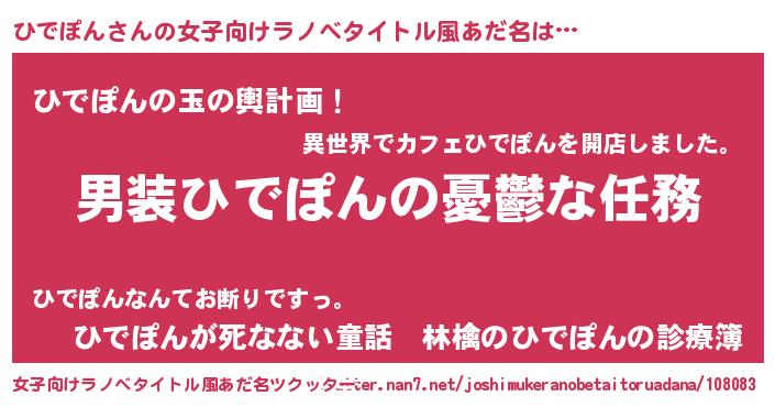| 男性向けラノベタイトル風あだ名 | 『うちのひでぽんが世界を掌握している!』 |