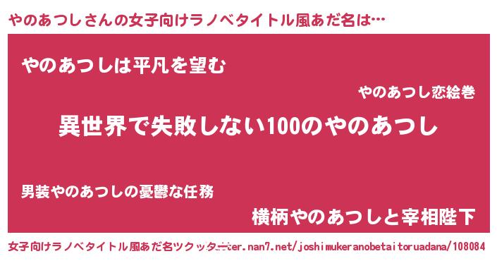 | 男性向けラノベタイトル風あだ名 | 『やのあつしという概念が存在しない退屈な世界 』 |