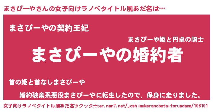 | 胡散臭い通販商品みたいなあだ名 | 『運命の人と巡り会える高級そうな皿…その名も「まさぴーや」』 |